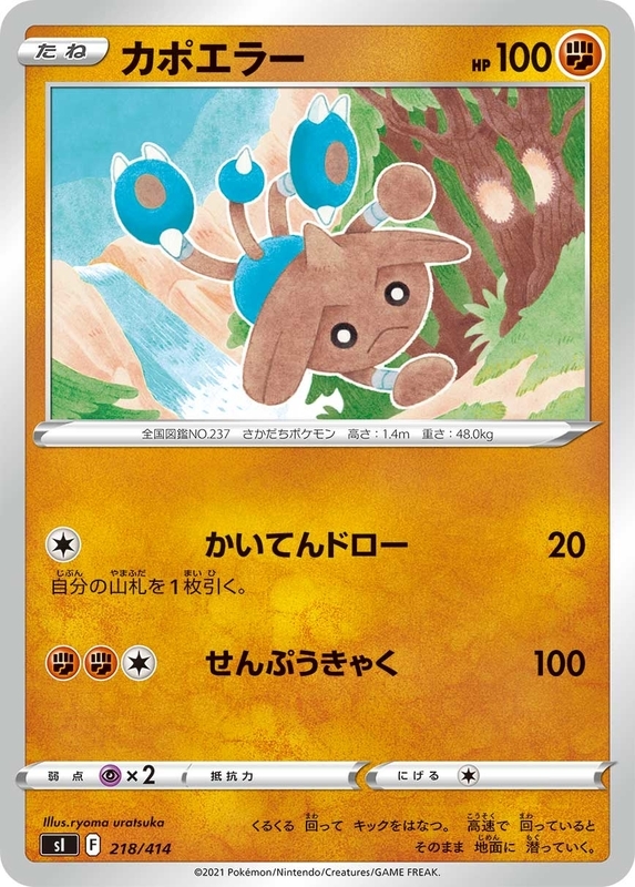 「カポエラーの住処の木はカポエラーのキックが当たる位置の皮がはがれている」、解像度高すぎ。巨匠・有田満弘が第一弾のヒトカゲで見せたポケカイラストの方向性の一つに、「ポケモンと、そのポケモンがいる風景と、両者の相互作用を描く」っていうのがあるんですよね。